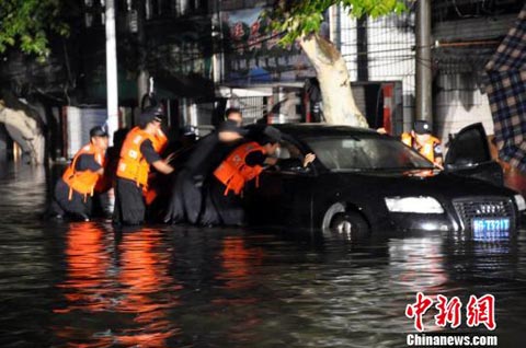 景德镇市公安局特警民警紧急转移被困车辆及人员。 石卫明 摄