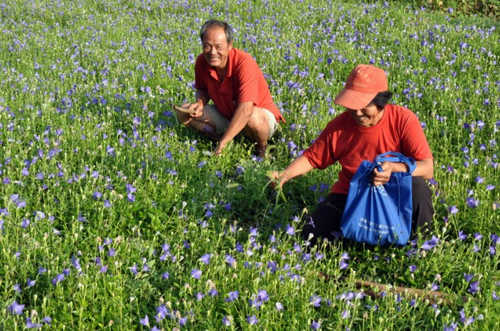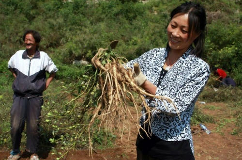 这里说的“小人参”就是在沂源县南鲁山镇北部山区家家户户种植的桔梗。因其根茎酷似人参,药用食用价值高,价格好而被称谓“小人参”。现在正是桔梗花开的时节,只见满山遍野都是颜色鲜艳、形如悬钟的紫色花朵。山上山下,村头路旁,桔梗花扑面而来,直逼你的双眼,美得让人心醉。