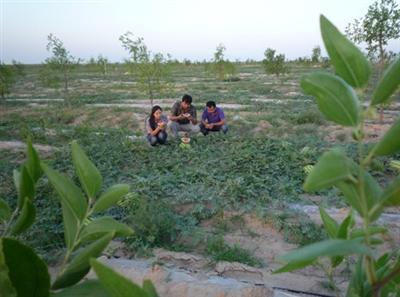 盐池县马儿庄万亩枣树林下西瓜成熟了,瓜农王金成正陪同客人在自家承包的300余亩林地内品尝西瓜。该枣树基地总建设面积1万亩,栽植枣树17万株。2012年,为了切实增加农民增收入,该县依托林改,大力发展林下经济,实行土地发包流转制,盘活林地的经营权,在林下间种西瓜、土豆、红薯、黄花等农作物6000多亩,预计年综合效益可达1760余万元。