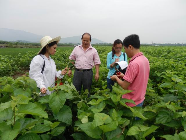 桑树青枯病是该县桑树多发病、危害严重的病害,每年夏伐后该病或多或少有发生,尤其是中平、罗秀、运江等乡镇的桑树青枯病为害面积呈递增态势。为了取得第一手材料,调查青枯病的发生规律、发病症状、发病条件等相关内容,朱方容一行赶到中平镇良山村委平山垌桑园调查。他们用剪刀剪下病枝,查看病枝症状,还挖出地下根查看根部发病情况。有了第一手调查材料,他们就可以进一步研究如何防治青枯病,如何提高桑树的抗病力了。