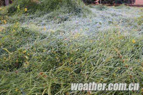 中国天气网讯 近日受冷空气影响,甘肃山丹县出现霜冻天气,造成上万亩油菜受灾,目前当地天气已经转晴,气温逐渐回升。