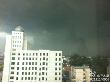 27日13时左右,顺义乌云密布。(图片来源:新浪微博)