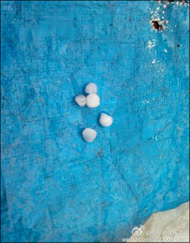 27日,北京局地出现冰雹。(图片来源:新浪微博)