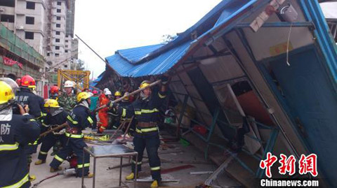 中新网唐山9月27日电(白云水 王宇) 27日下午,一场突如其来的大风,致使河北省唐山市一建筑工地的三层彩钢楼房轰然倒塌,5名工人被困。通过紧急的自救和随即赶到的消防官兵的紧急救援,被困人员被成功救出。