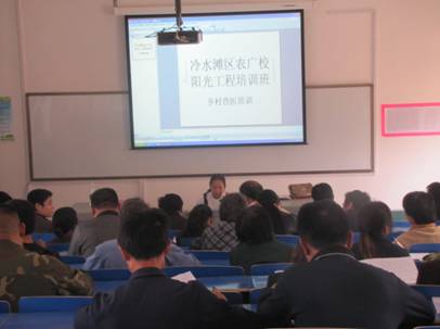 10月10日上午,冷水滩区农广校在仁湾镇黄甸村开办的阳光工程“乡村兽医专业”培训班正式开班。群众报名拥跃,原计划招50人,来报名的就有100来人。此次培训为期四天,聘请了区畜牧局的高级兽师医吕老师为学员讲课。培训以理论和实践操作相结合的方式教学,借助骄阳小学的多媒体教学室,通过图文并茂的PPT讲解,收到了很好的培训效果。课后,授课老师还留下了电话号码,方便学员们不懂的技术问题可以随时请教,保证了培训的有效性和持续性。