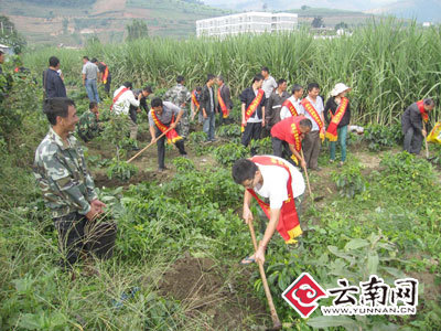 云县幸福镇大力发展咖啡产业,2011年至2012年共发展咖啡种植面积2.27万亩。目前正处于咖啡管护的黄金节令,为掀起咖啡科学管护热潮,幸福镇新农村建设指导员深入忙峨村瓦房寨,带头示范帮助农户管护咖啡,进行中耕除草施肥。