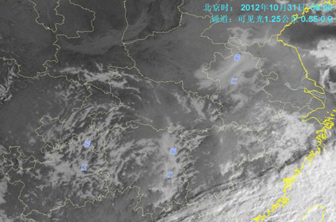 气象卫星大雾监测图像2012年10月31日08:00 (北京时)