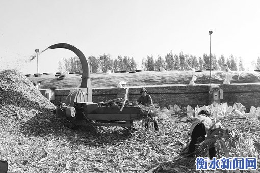 眼下玉米已收获完毕,大批玉米秸秆将被农民丢弃或焚烧,不仅污染环境还容易引发火灾,武邑县肖桥头镇积极引导当地养殖大户和养殖专业合作社发展青贮玉米,不仅充实了养殖户的饲料袋子,还鼓起了农民的钱袋子。图为该镇奶牛合作社正在加工青贮饲料。