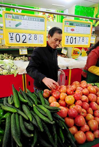 11月14日,消费者在洛阳市涧西区洛阳平价商店珠江路好菜篮直营店内选购。