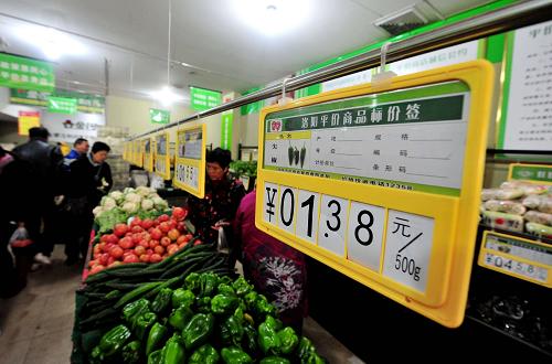 11月13日,洛阳市首批15个农副产品平价商店开始试运营。据了解,洛阳市首批平价商店所售平价商品共计40个品种,平价商店主要通过产销对接、由现代物流企业统一配送,或实行产、供、销一体化,消除或减少中间流通环节,让市民买到更多低于市场价格的农副产品。新华社发(张怡熙 摄)
