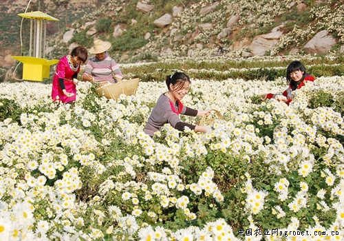 去年,该镇又投资100多万元建起了一座设备先进的现代化菊花加工厂,对基地之外的菊花敞开收购,将鲜菊花加工成菊花保健茶、保健枕等销往浙江、广东等地区,部分产品还出口创汇。今年,黄土岗镇菊花种植面积达1.5万亩,占全镇总耕地面积的31%,预计可实现产值9000万元,实现全镇人均增收1800元。福白菊已成为黄土岗人的致富花、幸福花。
