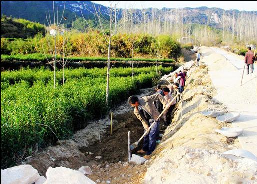 近日,岳西县店前镇司空村农民正在修建引水渠道。入冬以来,店前镇紧紧抓住冬季农闲有利时机,组织实施开展引水渠道修建、河堤加固、当家塘清淤等水利基础设施建设,迅速掀起冬修热潮。