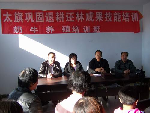 太旗是锡盟的奶牛养殖大旗,为切实提高农牧民的养殖水平,太旗农广校为提高培训针对性和实效性,抓住农闲时节,根据各村项目产业实际情况,在农民需求的基础上,按照需求什么培训什么,缺什么补什么的原则,认真拟定了培训计划,对培训课程进行了精心安排,适时培训。聘请了原农牧局副局长、奶牛办主任王雨贤担任主讲老师,从11月份开始在千斤沟镇的四联、二联、西大井、六号等村开展了巩固退耕还林成果奶牛养殖技术培训,于11月14日结束。共举办奶牛养殖技术培训班四期,培训退耕户243人。培训期间,学员专心听讲,认真记录,实行互动交流,收到良好效果。