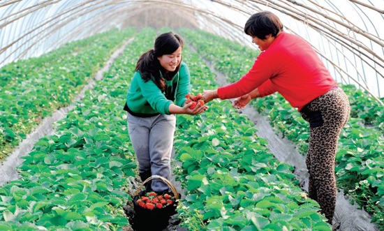 丁广江带着数十名工人,在近300亩的大棚里,摘了100多斤红艳艳的草莓,瞬间就被等待已久的客户抢光了。“(我们的)草莓品种以‘红颜’为主。”丁广江介绍说,今年,他想尽办法让草莓早日成熟。“给它们加盖了大棚的膜,施用有机肥,还专门养了蜜蜂传粉……”辛苦终于有了回报,他的“红颜”草莓提前一个月上市了。“一般冬季草莓要在12月中旬才会陆续上市。”肥西县政府相关部门人员介绍说,这批草莓上市,在全省范围内也算率先的。