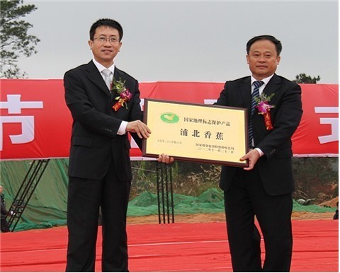开幕式上,国家质检总局科技认证司地理标志处副处长刘红春宣读浦北香蕉获得地理标志产品保护的公告,并代表国家质检总局为浦北县受匾。中共浦北县委书记张建国代表浦北县接受牌匾。