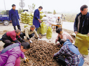近日,临海市白水洋镇店溪村村民谢良猛把新挖的8000公斤芋头,以每公斤1.9元的价格出售给来村收购的贩销大户,当天就卖了15200元。据了解,今年白水洋镇有3000多亩的芋头喜获丰收,粗略估计,当地村民仅种芋头可创收1100多万元。