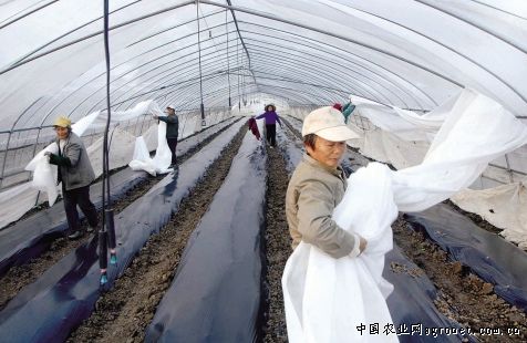 近来气温下降,12月3日,海宁市硖石街道军民村紫薇果蔬园艺场的菜农们正忙着给单体蔬菜大棚添加保温材料,以确保冬天大棚蔬菜的生长。