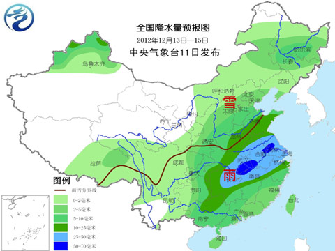 晋冀鲁豫及黑吉等地有较强降雪。13日至15日,甘肃南部、陕西大部及华北、黄淮北部、东北大部有小雪或雨夹雪(过程降水量一般有0.5~2毫米),其中山西南部、河北南部、山东北部、河南中北部以及黑龙江中南部、吉林西部等地有中到大雪,局部有暴雪或雨夹雪(过程累计降水量3~7毫米,局部可达10~15毫米)。另外,13至15日,新疆北部仍多降雪天气,大部地区将有小到中雪,局地大到暴雪,累计降雪量有2~10毫米,塔城和阿勒泰局部地区可达10~20毫米。