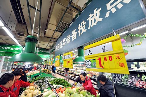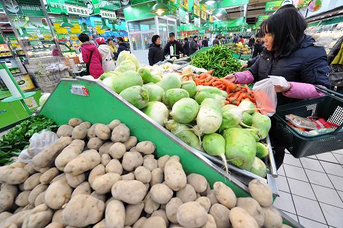 12月18日,宁夏回族自治区银川市7000余吨储备蔬菜正式开始向市场投放,本次储备蔬菜的投放日期将从12月18日一直持续到2013年的2月28日,投放量超过7000吨。据了解,随着“两节”即将到来,银川市的蔬菜等鲜活农产品价格有所上涨。为了保障市场供应,维护物价基本稳定,银川市投放土豆、大白菜、青萝卜、葱头等6类蔬菜到市内180个零售网点,价格将比每周同品质、同品种农贸市场蔬菜的平均价格低15%,且采取动态管理,投放期内每周确定一次价格。新华社记者 彭昭之 摄