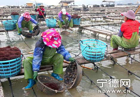 12月12日,福建宁德蕉城区三都澳海域,养殖户们正用龙须菜喂养鲍鱼。据悉,三都澳海域共养殖鲍鱼4万余筐,产值达10多亿元。鲍鱼的养殖也带动了当地龙须菜的养殖。鲍鱼、龙须菜养殖成了沿海农民主要收入来源之一。