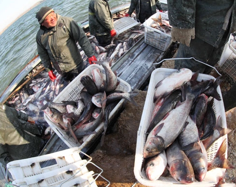 新年前夕,赣榆县淡水养殖业迎来丰收季,每天都有数十万公斤鲢鱼、鲤鱼、鲫鱼、黑鱼等淡水鱼起捕上市,渔民们将淡水鱼充氧运往北京、上海、浙江等地,以满足节日市场需求。