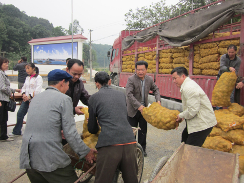 12月13日,防城港市农委李兴辉主任与市民生办何宗文副主任到防城区防城镇大王江村发放马铃薯种子。