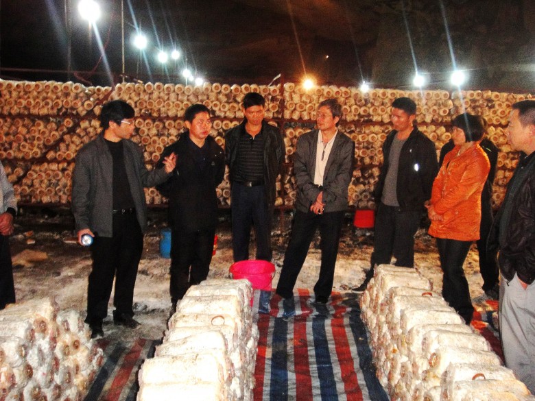 近日,广西食用菌创新团队首席专家刘斌、岗位专家韦仁岩、何达崇及广西6个食用菌试验站站长一行9人在桂林市推广站站长蒋德赏等人的陪同下,到永福指导食用菌生产工作。韦首席一行在永福县农业局有关人员的陪同下,深入食用菌生产基地实地察看了当地食用菌生产情况,听取了生产上的有关情况汇报,针对桂林永福山洞食用菌农民专业合作社的生产和发展提出了指导性的意见,并对永福县今后的食用菌产业发展提出了很好的建议,食用菌创新团队的指导将为永福食用菌产业的发展提供了坚强的技术支撑。