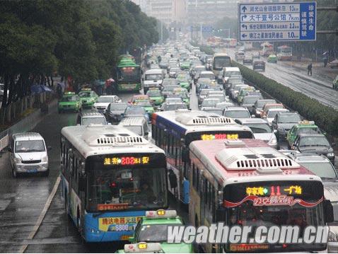 27日早晨,受雨水影响,南昌上班“早高峰”车辆拥堵严重(摄:汪莹)