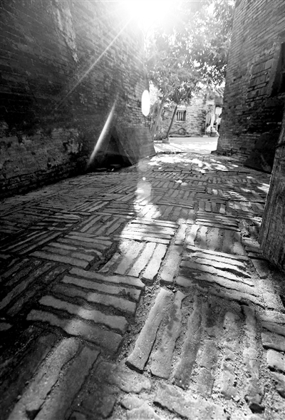 保平村明清民居,路面由砖铺设,图案方正很有特色