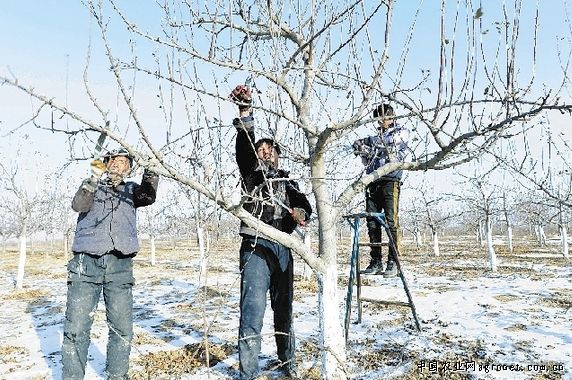 1月2日,记者在宜川县阁楼镇西岭村的果园里看到一派繁忙的景象,一些果农正攀在苹果树上进行修剪。虽然是数九寒天,但我们的果农们并没有“闲”下来,刚刚销完苹果又忙碌了起来,清园、涂白、施肥和冬剪,全面进行果园冬季管理,促进苹果丰产。据了解,去年我市苹果喜获丰收,总产270万吨,产值75亿元;果农人均苹果纯收入突破5000元,达到5250元。