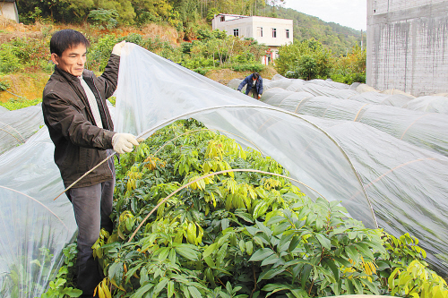 广西兴业县做好农作物抗寒防冻 果树“穿衣”过