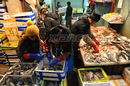 凌晨4时,寒风刺骨,当整个城市还在沉睡的时候,位于西一路的水产品市场已灯火通明、车水马龙。