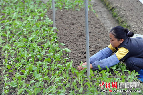海南琼海市嘉积镇的菜农在赶种蔬菜。