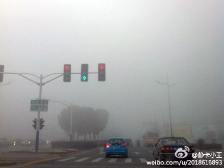 大雾弥漫,能见度低。(图片来源:新浪微博 @静卡小王)