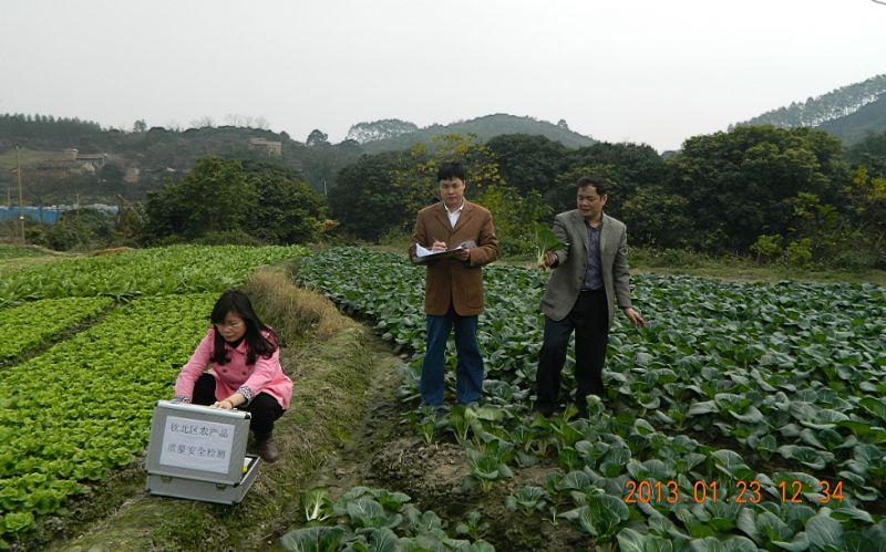 为确保2013年春节期间广大人民群众吃上放心农产品,过上一个安全、祥和的节日。2013年1月23日,钦北区农业局局长张文锋及分管领导王朝胜带领钦北区农产品质量安全监测管理站的工作人员深入到钦北区各镇蔬菜生产基地督促检查农产品质量安全监管工作。当天共抽检了30多个蔬菜品种,全部合格。