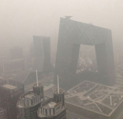 北京深陷雾霾包围。(图片来源:新浪微博)