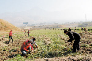 吴应明说,他在东川区拖布卡镇对面的会泽县干沟镇石膏塘村出资50余万元,租了120亩土地,全部种上了大蒜。再过几天,每天帮他挖蒜的工人就有50多人。他说:“在东川,有田的地方就有大寨人的足迹,目前有近50位村民到村子外面承包土地种蒜。规模在3000亩左右,销售收入约2700万元。”