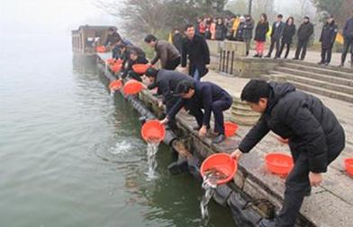 为丰富湘湖鱼类品种,维护湘湖水域生态平衡,保护渔业资源环境,1月28日上午,区渔政管理站联合湘湖管委会,在城山广场和湘湖二期水域举行增殖放流活动。杭州市农业局副局长陈品南、杭州市渔政管理总站站长戚志良、杭州市财政局农材处处长鲍延凤、萧山区农业局副局长杨德亚参加放流仪式。