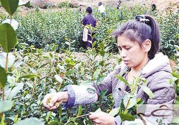 眼下,武平春茶采摘陆续展开。昨日,浙江老板傅向平组织几十位农民工,在武平县桃溪镇桃溪村其所承包的千亩茶山上采摘茶叶,茶园里随处可见采茶人的忙碌身影。图为当地农民工采摘茶叶时的情景。