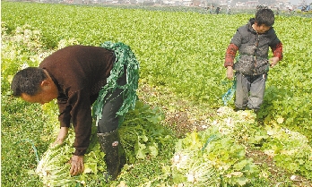 近日,箬横镇红星村农民的冬花菜开始收获上市。去年冬天,该村村民张聪明承包了邻村70亩冬闲田,种起了冬花菜,亩产4000公斤,产值3000多元,菜价是去年同期的2倍多。
