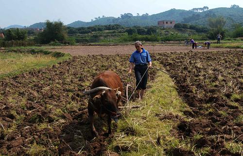 3月9日,广西钦州市钦北区小董镇村民在耙田准备春种水稻。时下,广西各地气温回暖,村民们纷纷抓住有利时机投入到春种春收的农事活动中。新华社记者 张爱林摄