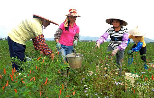 3月9日,钦州市钦北区那蒙镇农民在抢收辣椒以便种植水稻。新华社记者 张爱林摄