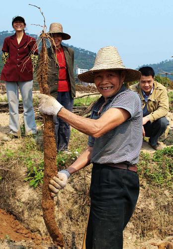 3月9日,钦州市钦北区新棠镇群众在抢收淮山以改种水稻。新华社记者 张爱林摄