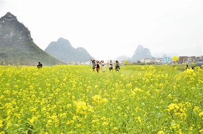 去年冬种,罗城仫佬族自治县政府出资购买种子,号召群众在公路沿线两旁田间地头种油菜,美化仫佬山乡,促进农业增效,农民增收。目前,全县万亩油菜花已竞相开放,一派春意盎然的景象,吸引众多游客前来踏青游玩,享受春暖花开的惬意。