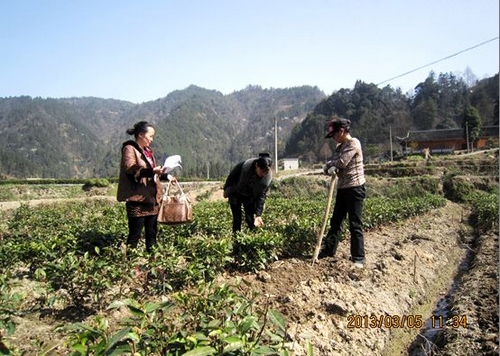 3月5日一早,笔者随农业技术指导员张光宇一起,至下坪乡下坪村进行春耕指导。技术员每到一户,都要仔细询问春耕所需的种子肥料等物资是否备齐,是否还有什么困难;并同科技示范户一起到田间地头查看油菜生长情况,以及马铃薯、红薯的育苗情况;针对有茶园的示范户,技术员还要指导他们进行春季茶园管理。