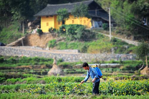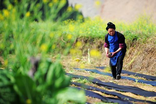 3月21日,一名苗族妇女在田间劳动。新华社记者刘续摄
