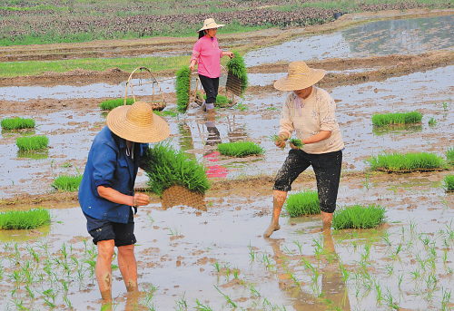 3月21日,桂平市石咀镇旺龙村的农民正在开展低水位水稻生产。桂平约有13万亩中低水位早稻,为此该市大力推广应用适宜在低水位农田生长的优良高产种子和防寒育秧、免耕抛秧等先进农业生产技术,引导农民抢季节开展春耕生产。