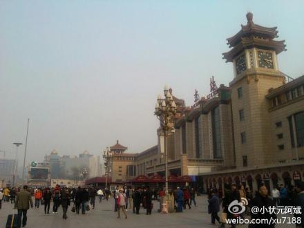 今天下午,北京有雾霾,能见度较差。(图片来源:新浪微博)
