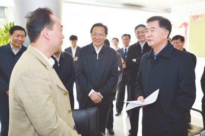 3月28日,中共中央政治局委员、国务院副总理汪洋(右一)在农业部行政审批综合办公大厅,与前来办理审批业务的群众亲切交谈。