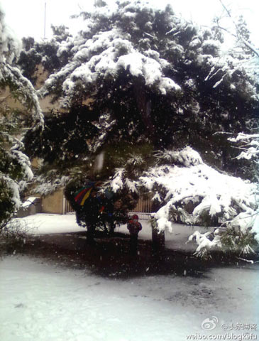 4月1日,辽宁锦州雪花纷飞。(图片来源:新浪微博)